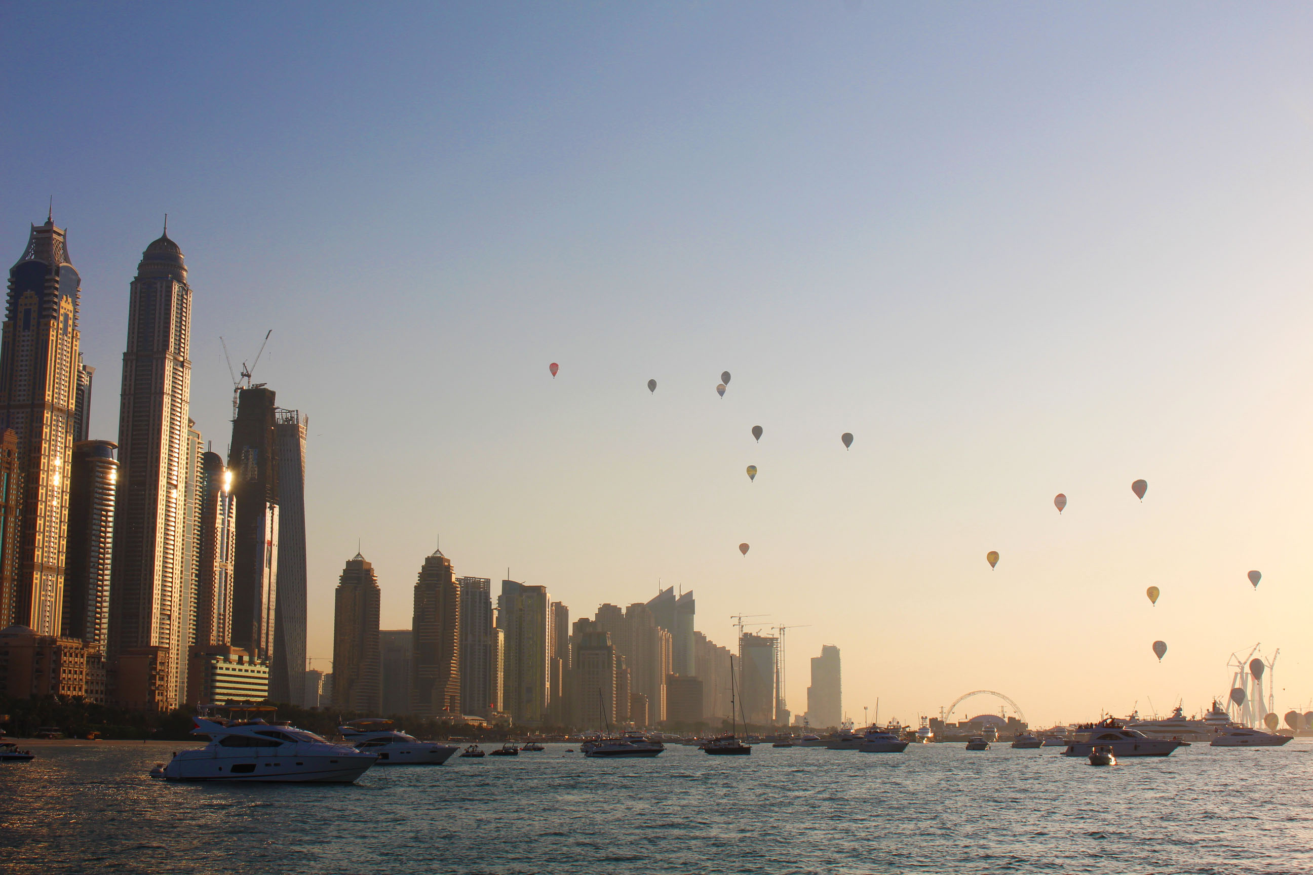 Our second day was pretty incredible with a beautiful lunch at Vida downtown Dubai, a very modern hotel with great food and a stunning pool area, after a walk through Bur Dubai and a cultural tour of the old Dubai region (click here to find a review on my previous visit to Bur Dubai) We departed to a yacht private party, yes a yacht party just for us!  If you’re able to hire a Yacht in Dubai with a group of friends its highly suggested. We all agreed that this was the highlight of our trip, being out in the sun on the sea listening to incredible music and dancing into the sunset was truly magical. It also happened to be UAE national day so we had the pleasure of witnessing hundreds of beautiful big balloons being let off into the sky as we docked for a swim in the gulf. I am kind of a chicken when it comes to swimming in the ocean but luckily my friend Kajal and the rest of the gang cheered me on encouragingly, only to discover a jelly fish not too far away from me, this is why I am afraid of swimming in the ocean people!
