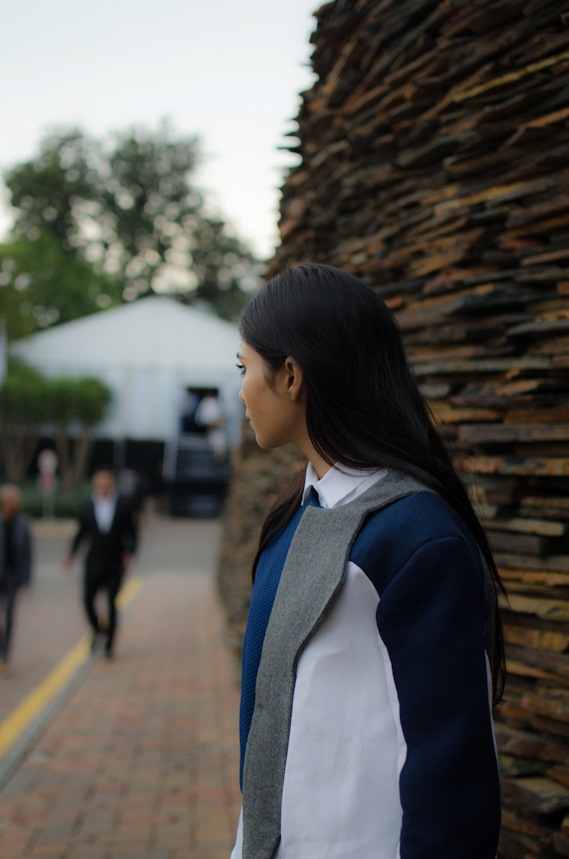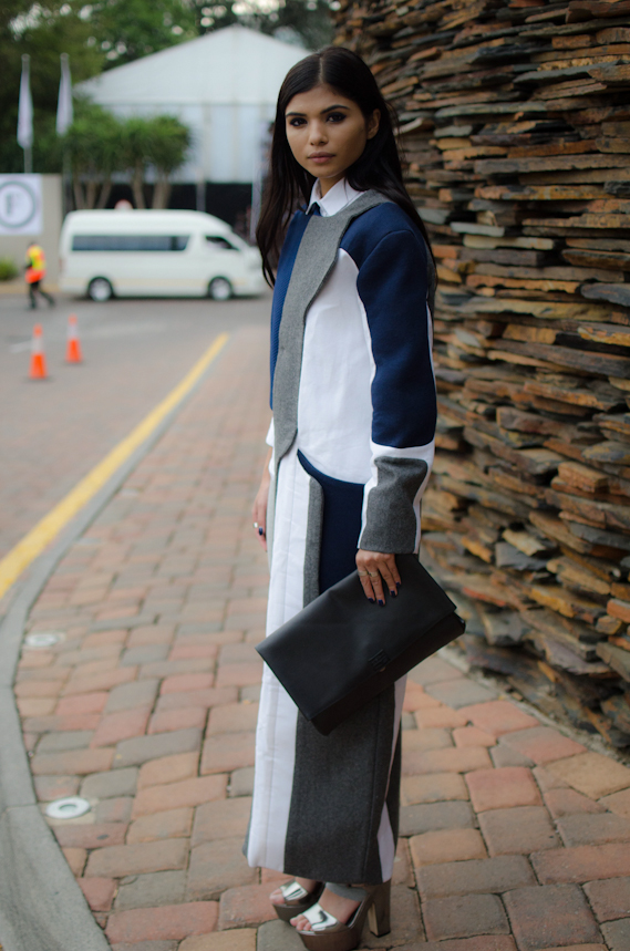 I had seen this half coat by South African young designer Jenevieve Lyons last season and I had been dying to wear it ever since! I was super excited to get the chance to privately view Jenevieve’s collection and selected to wear this piece for SAFW.  Everything she designs is out of this world (literally) and I love her unique take on fashion and structure. Most of her collection has a sports luxe feel which resonates strongly with my style.